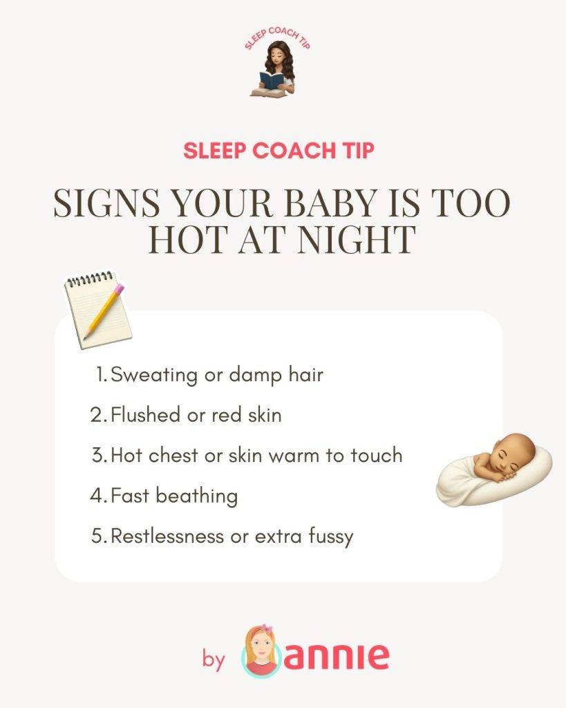 Overheating is associated with increased risk in sleep-related infant deaths, and safe-sleep guidance repeatedly flags “don’t let baby get too hot.”